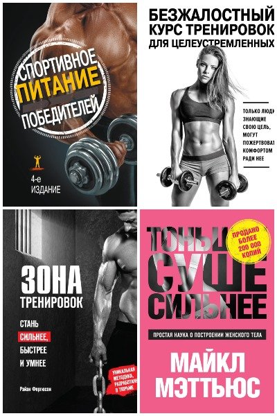 Лучшие книги про тренировки и занятия дома. Хотите заниматься спортом, быть здоровым, иметь красивое тело? Вы боретесь с лишним весом, но срываетесь и возвращаетесь к прежним формам? Хотите иметь тело мечты? - тогда эти книги для Вас! После прочтения любой из них вам больше не потребуется отдельный тренер. Все про питание, упражнения и уход за своим телом.